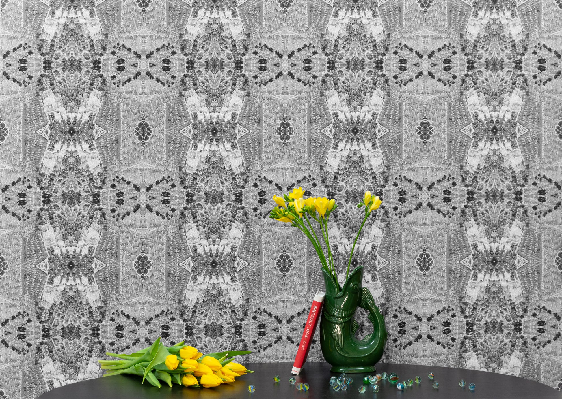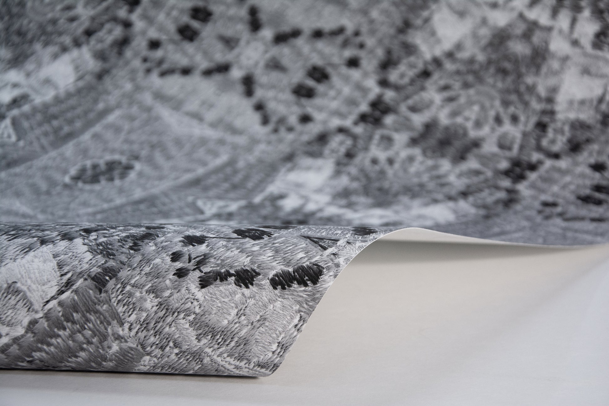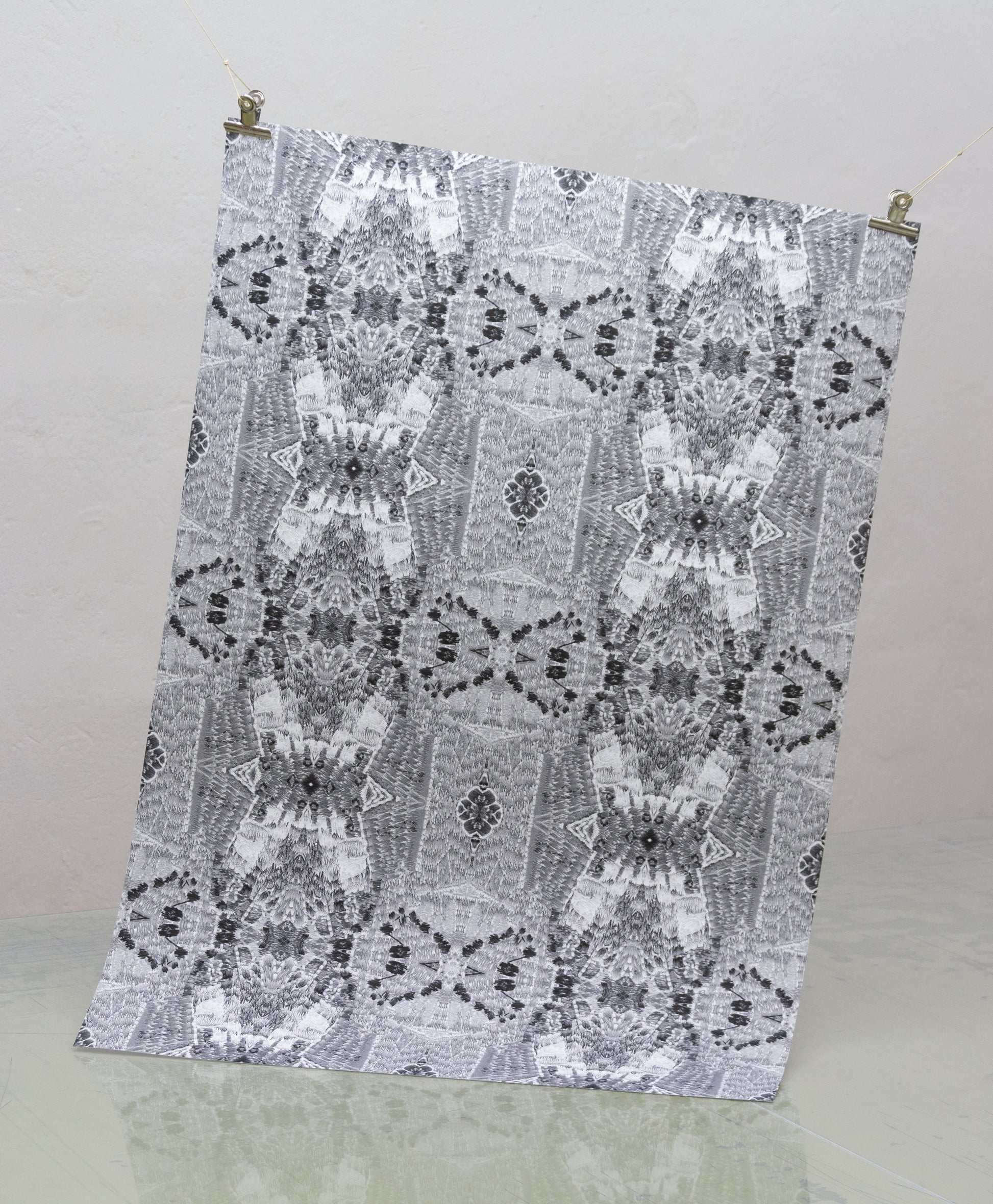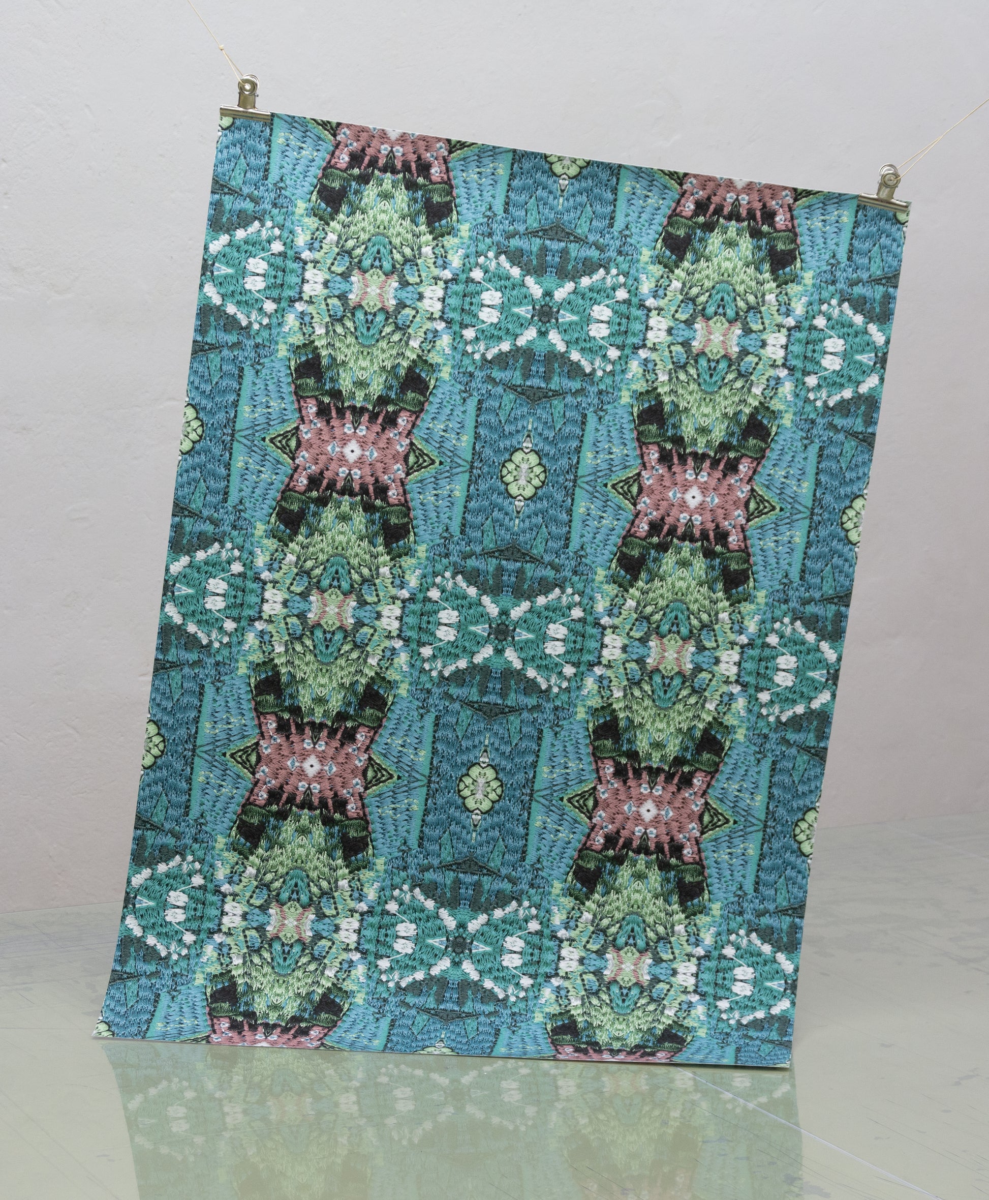 Warum nicht – Samstag Nacht mit dem Kaleidoskop ganz tief in eine samtig-weiche Stickerei eintauchen. Saturday Night Special lädt zum Verweilen, zum Sich-Vertiefen ein, sei es in die bloße Form (Schwarz-Weiß) oder in sanfte lila Augen vor tiefgründigem Grün. Dieser Rapport zieht auch hitzige Gemüter in seinen Bann.