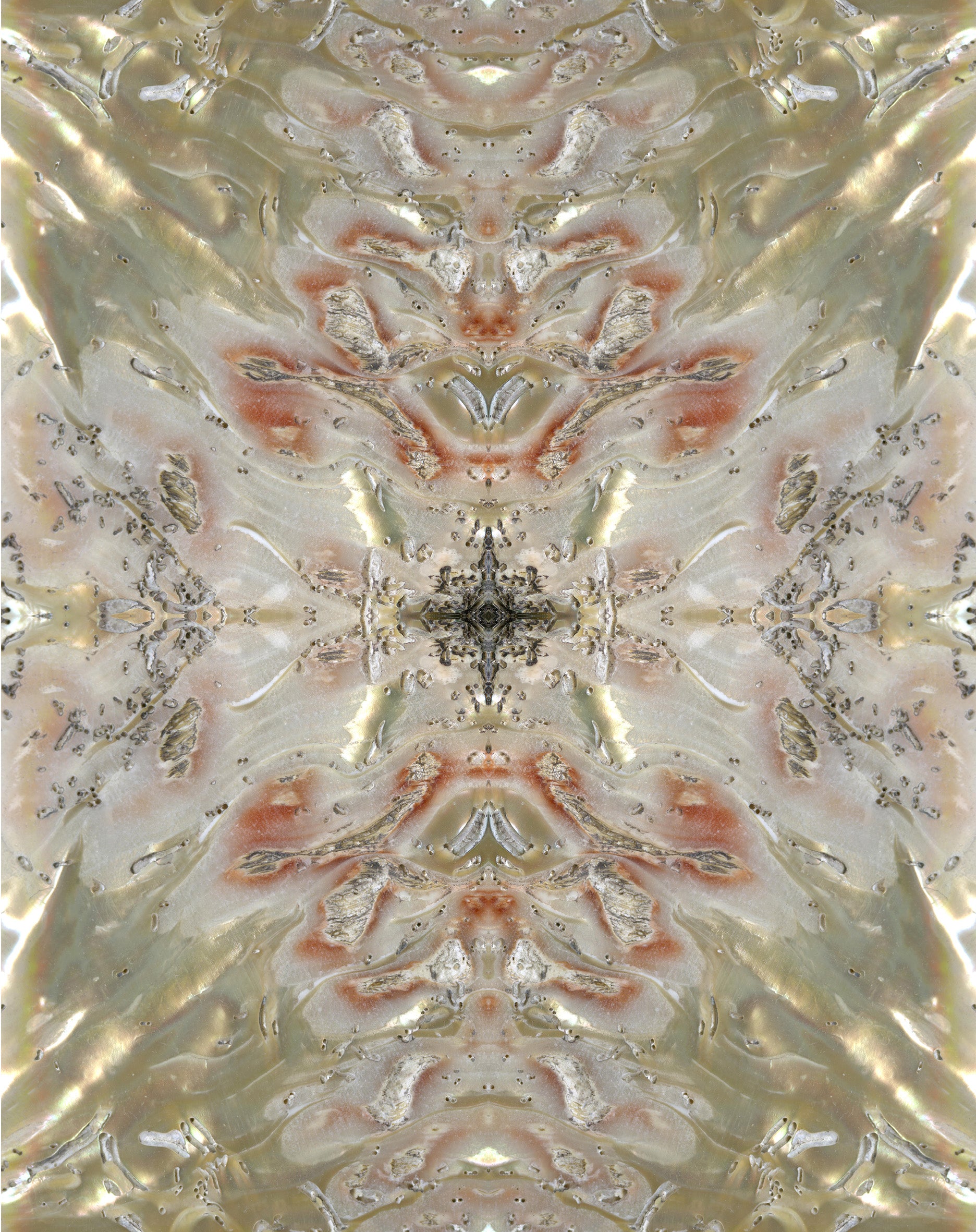 Ein Leben in der Schmuckschatulle: Dieser Rapport zeigt das, was die Seeschnecke sieht, wenn sie von innen auf ihre Heimstätte blickt. Unnachahmlich pikant ist der Schnecken-Stil; an die Wand gebracht, schafft diese Tapete ein beinah barockes Flair – verschwenderisch wie ein immerwährendes Feuerwerk.
