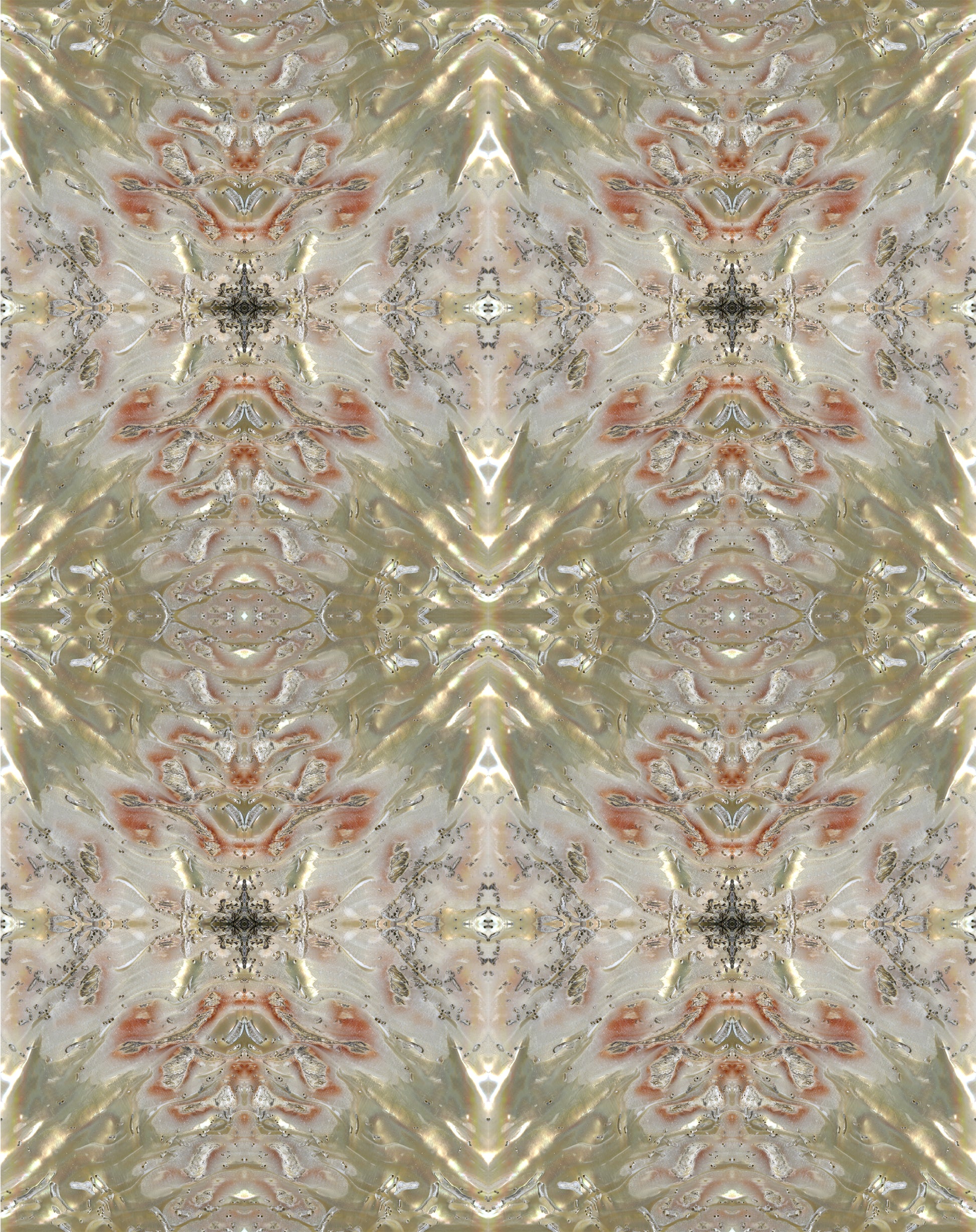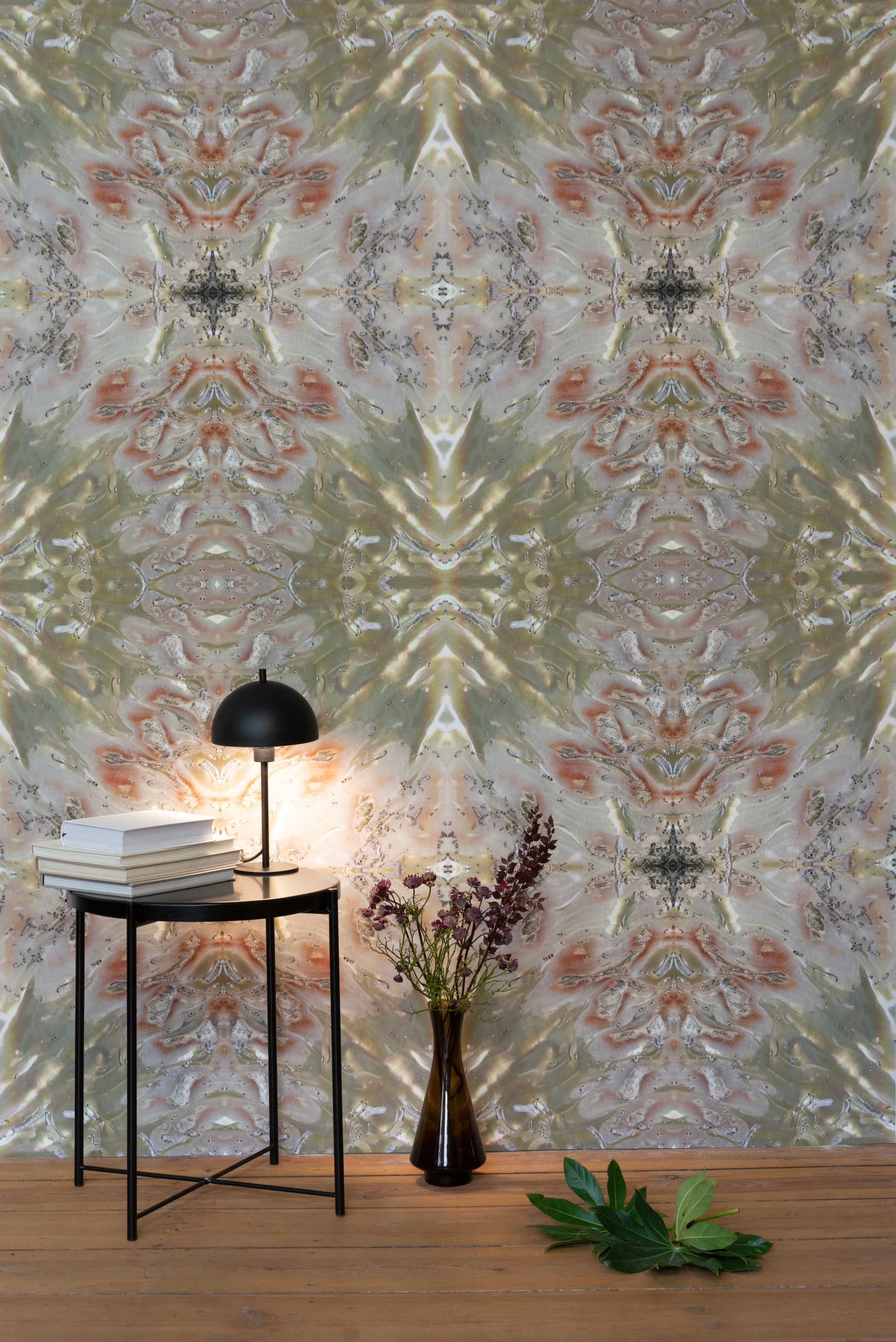 A life in a jewelry box: this pattern shows what the sea snail sees when it looks at its home from the inside. The snail’s style is inimitably piquant; pasted on the the wall, this wallpaper creates an almost baroque flair—lavish like perpetual fireworks.